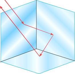 A corner reflector reflects light parallel to the incident ray, no matter the incident angle. |