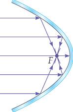 Parallel rays hitting a spherical mirror come together at the focal point (or appear to have come from the focal point, if the mirror is convex) |