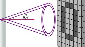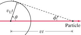 refraction, n, at a speed, v, what is the angle between the vector of the propagating Cerenkov radiation and the vector in the direction of the propagating particle? Given: vL = c/n (vlight < c) |