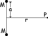 separated by a distance 2a. ans: g = 2MGr((a2 + r2)-3/2 |