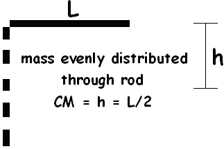 The one to the right is obvious, CM = L/2 (the middle of the meter stick), thus, h is zero to L/2 PEmax or Ug = mg(L/2) and KR = ½Iω²