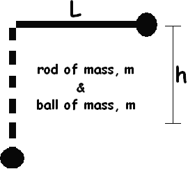 again CM is very simple (it's the center of the ball since the rod is