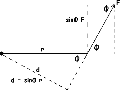 times the lever arm (distance) is Torque, t d is the perpendicular distance from the pivot point to the force vector t = Fd where d = sinφ r t = r F sinφ