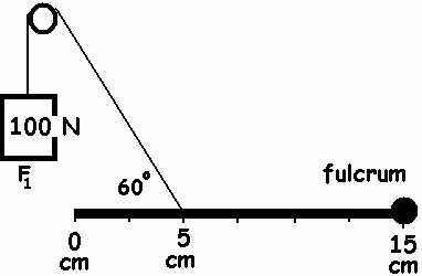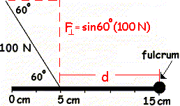 t = F^d, which is a little easier for beginning students to understand. t = F^ d t = sin60°(100N) (0.1m) t = 8.66 Nm