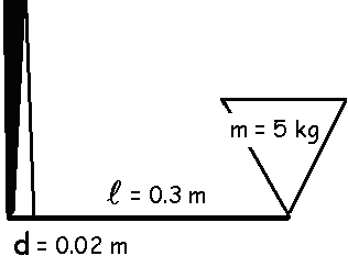The muscle provides a counter-clockwise torque where the 5 kg mass is creating a clockwise torque. The question is, how much force is exerted by the muscle to maintain the position of the 5 kg mass? |