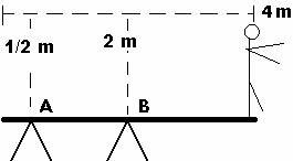 Some examples Stick man (mass 50 kg) is standing at the end of a diving board of mass 10 kg. What is the force exerted on point A and B? |