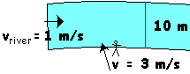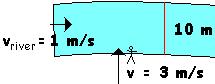 a) vx-swimmer = vx-river v (sin θ) = 1 m/s 3 (sin θ) = 1 m/s θ = 19.5° upstream |