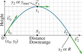 Example The figure shows the trajectory of a ball undergoing projectile motion over level ground. How do the speeds v0, v1, and v2 compare?