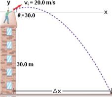 A 2.00 kg ball is thrown upward with an initial speed of 20.0 m/s from the edge of a 40.0 m high cliff. At the instant the ball is thrown, a girl starts running away from the base of the cliff with a constant speed of 4.00 m/s. The girl runs in a straight line on level ground. Ignore air resistance.