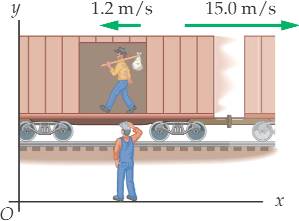 It appears the hobo in the train car is moving +13.8 m/s from the train engineer’s perspective |