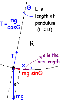 = -(g/L) θ in the same form as d2x/dt2 = -(k/m) x with the solution of x(t) = A cos(ωt + φ) where ω = √(k/m) θ(t) = θmax cos(ωt + φ) where