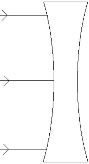 Please complete the ray trace for the below double concave lens. |